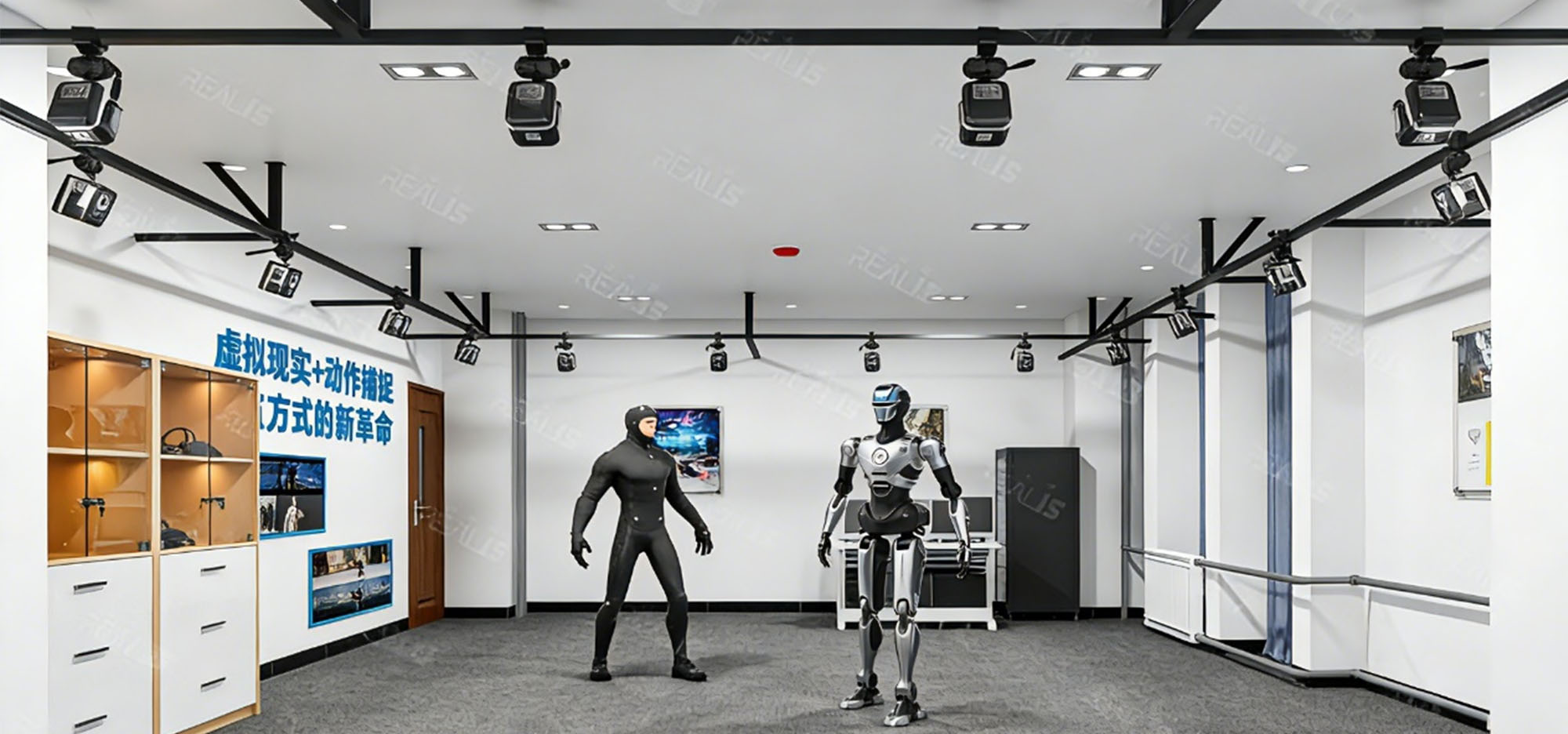 AI具身智能数据实训系统是一套以光学动作捕捉技术为核心,融合具身智能闭环逻辑的高校教学与科研平台。系统通过高精度红外相机实时采集人体全身及手部运动数据,结合动作重定向与智能优化算法,将标准化动作数据无缝映射至人形机器人,实现“人体示范—数据采集—机器人复刻—精度反馈”的完整实训闭环。系统支持多人在场、多机器人协同,配套构建基础动作库、专业动作库与异常场景库,为机器人动作训练与运动分析、动作规划与导控、机械驱动轨迹路径开发及智能制造运维提供高质量数据支撑
