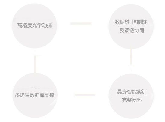 AI具身智能数据实训系统是一套以光学动作捕捉技术为核心,融合具身智能闭环逻辑的高校教学与科研平台。系统通过高精度红外相机实时采集人体全身及手部运动数据,结合动作重定向与智能优化算法,将标准化动作数据无缝映射至人形机器人,实现“人体示范—数据采集—机器人复刻—精度反馈”的完整实训闭环。系统支持多人在场、多机器人协同,配套构建基础动作库、专业动作库与异常场景库,为机器人动作训练与运动分析、动作规划与导控、机械驱动轨迹路径开发及智能制造运维提供高质量数据支撑